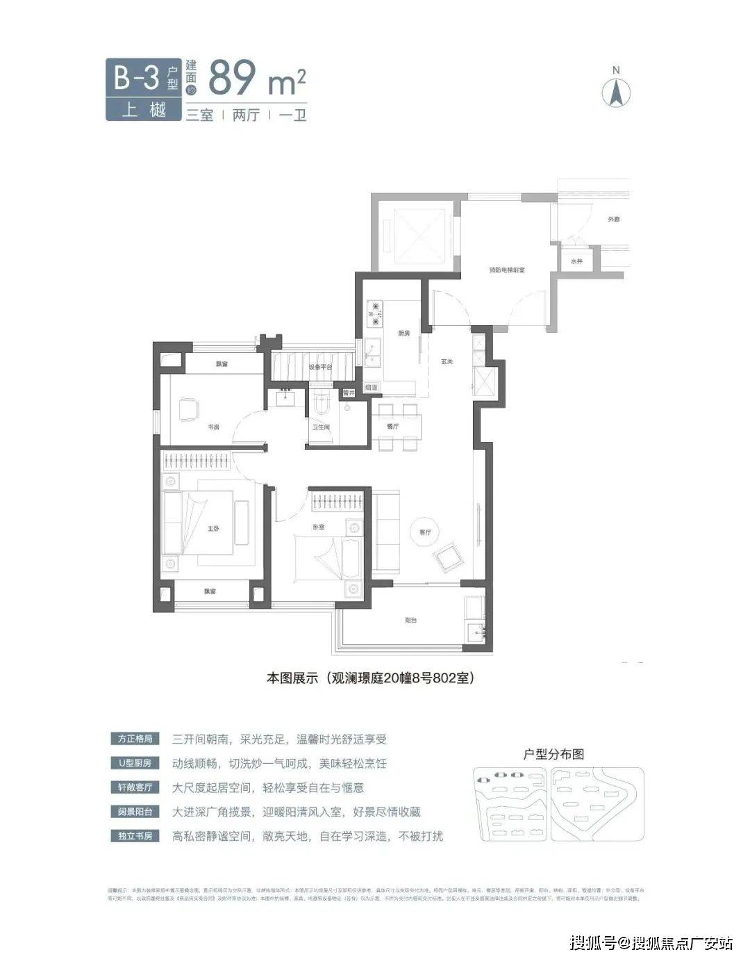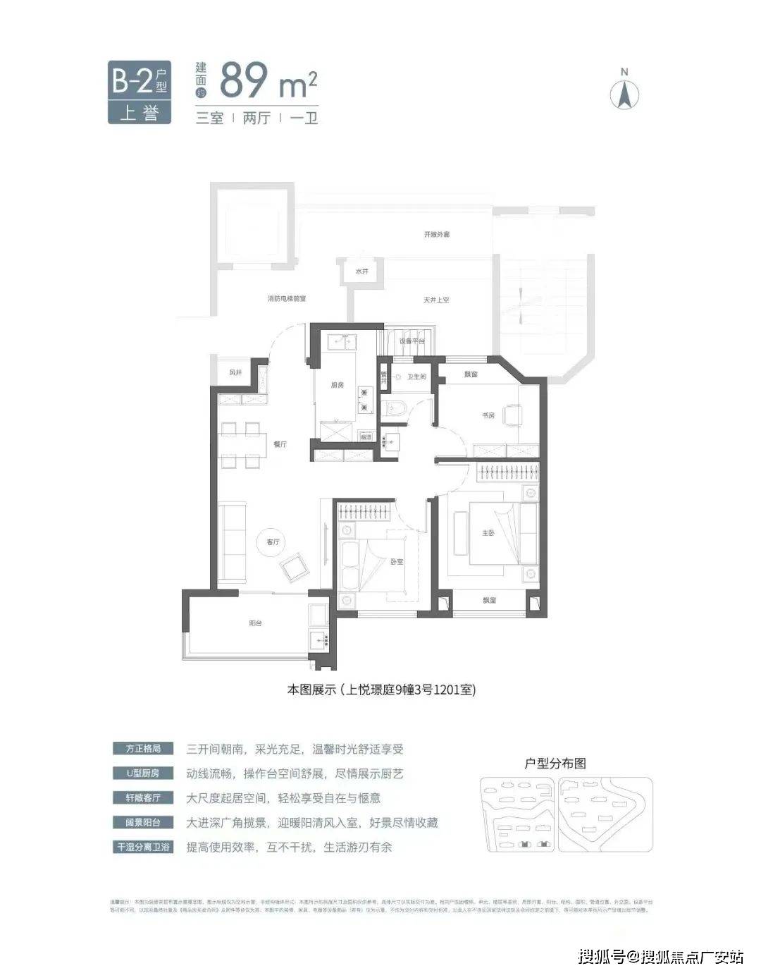 建面约105㎡3房2卫有两种气概(宽厅、竖厅),可满脚三代同堂、二胎家庭的需求。