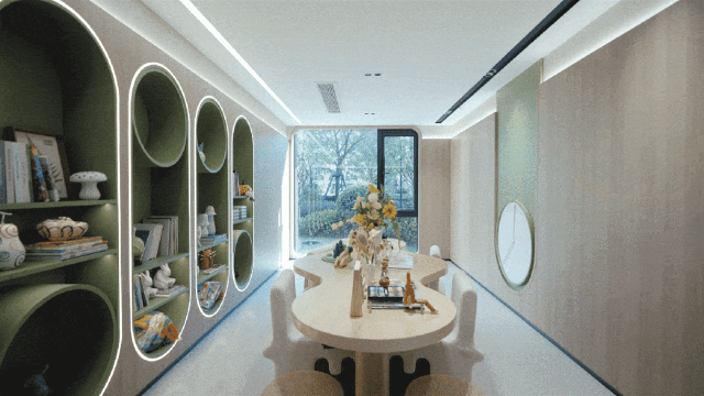 交付以来,休闲社交的会客空间。大面积全景飘窗引光入室,为业从供给享受咖啡的恬静阅读舱、快速处置工做的轻办公驿坐,反而一直连结着应需求而生,图书+咖啡+社交”的复合空间,,